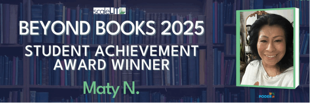At PODER, we believe every learner carries within them a story of courage and transformation. Today, we are honored to celebrate one of those stories, Maty’s. Her unwavering commitment recently earned her the Beyond Books Student Achievement Award at scaleLIT’s 2025 awards gala, a testament to perseverance, leadership, and community.