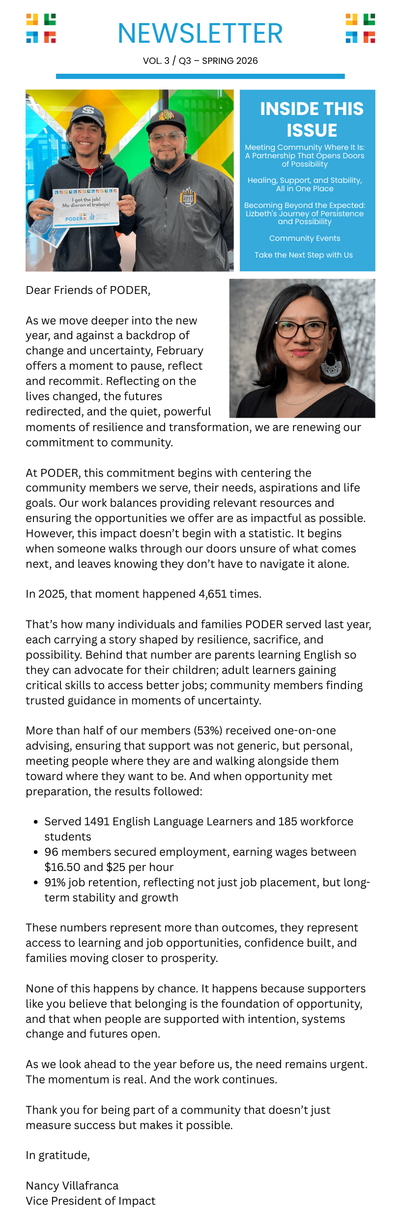 Every day, immigrant families on Chicago’s Southwest Side walk through PODER’s doors carrying more than paperwork or career goals. They carry fear, exhaustion, hope, and resilience, often all at once.