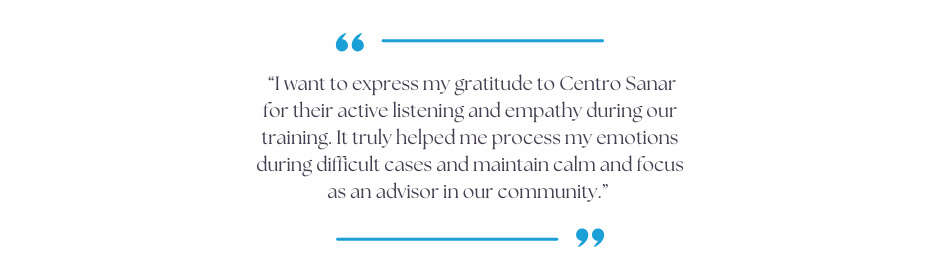Through a series of professional development workshops, Centro Sanar created intentional space for PODER staff to build emotional resilience, practice self-care, and gain practical tools for navigating high-stress and crisis situations. One core training, Intervention and Stabilization in a Crisis, equipped staff to recognize emotional distress, validate lived experiences, remind individuals of their inherent strengths, and respond with calm, compassionate accompaniment. Just as importantly, it invited staff to reflect on their own emotional well-being and boundaries.